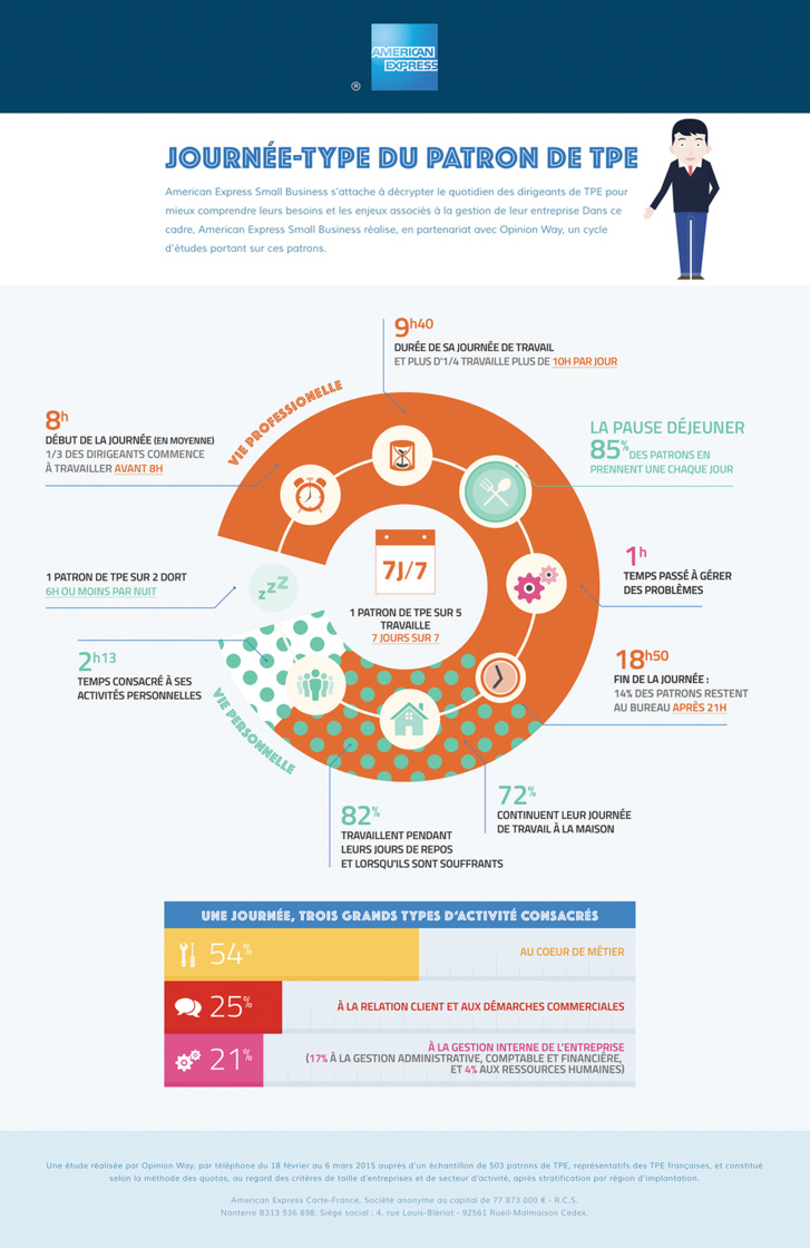 Après s’être intéressé à l’état d’esprit des dirigeants de TPE à l’international avec son baromètre annuel, American Express Small Business lance un nouveau cycle d’études dédié aux patrons de TPE français. A la suite d’une première étude dressant le portrait-robot du patron de TPE, American Express Small Business présente les résultats du deuxième volet consacré à la journée-type de ce dirigeant.