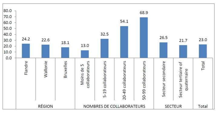 (1) Lors de l’analyse de ces résultats, il convient de faire remarquer que ‘recruter’ n’est pas nécessairement synonyme d’un ‘accroissement de l’emploi’. La PME peut également rechercher un remplaçant à un collaborateur qui quitte l’entreprise.