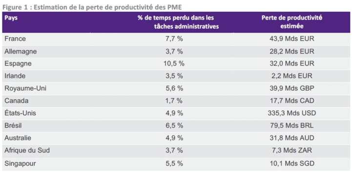 L’étude montre qu’une augmentation de la productivité de 7,7% en France se traduirait par une hausse du PIB d’environ 43,9 milliards d’euros. Réaliser un tel gain de productivité peut notamment se faire par la réduction du temps consacré aux activités administratives.