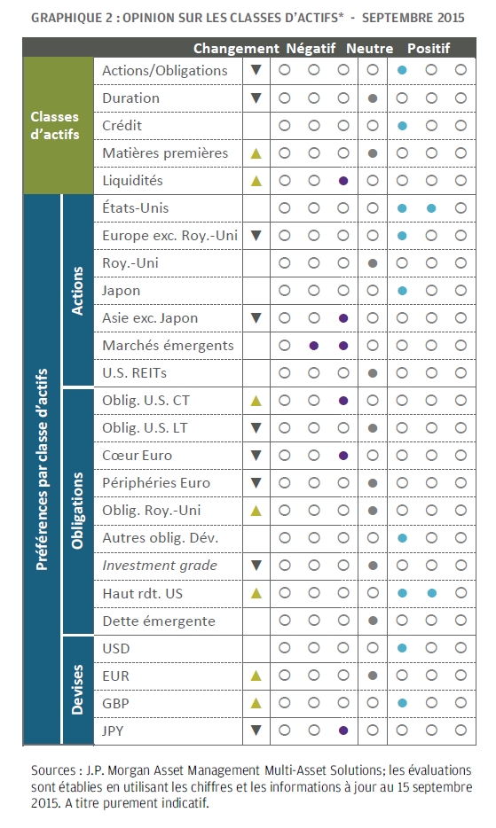 GRAPHIQUE 2 : OPINION SUR LES CLASSES D’ACTIFS* – SEPTEMBRE 2015