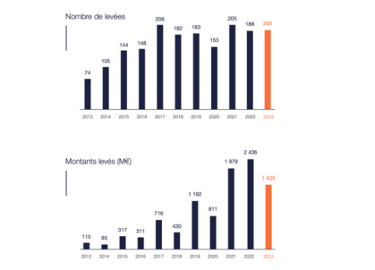 Elle s’offre même une hausse de 35 % du montant levé accompagné d’une hausse de 22 % de la taille moyenne du montant de la levée. Sur la période, 40 opérations ont été dénombrées en France contre 38 en 2022.