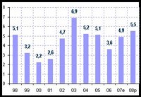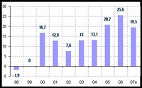 Les chiffres de l’économie algérienne reflètent un fort dynamisme. En 2007, la croissance a frisé les 5%, et nous attendons 5,5% pour 2008. Tout ceci dans un contexte d’inflation relativement contenue : 4,5% en moyenne en 2007, après 2,5% en 2006. La balance courante est très fortement excédentaire (25,6% du PIB en 2006, 19,5% en 2007).