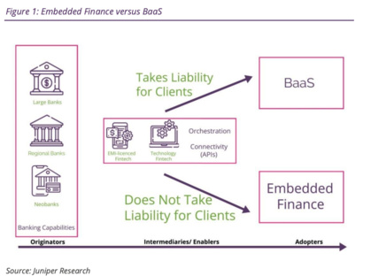 Selon Juniper, l’entrée des banques traditionnelles dans la course au financement intégré présente l’avantage, pour certains, de légitimer le concept de financement intégré, qu’il s’agisse d’entreprises ou de particuliers, qui pensent qu’elles bénéficieront de protections supplémentaires en faisant appel à des banques plutôt qu’à des tiers, ou pour les consommateurs qui pourraient être plus enclins à utiliser des méthodes de paiement non traditionnelles.