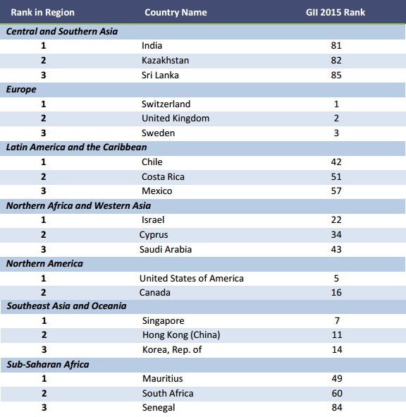 Global Innovation Index 2015: Switzerland, UK, Sweden, Netherlands, USA are Leader