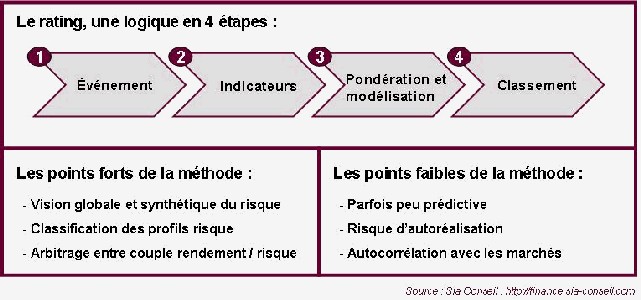Le rating est l’outil le plus utilisé dans l’évaluation du risque pays encouru par les entités économiques ayant conclu un contrat à l’échelle internationale. Les ratings sont des mécaniques de projection de la réalité sur une échelle unidimensionnelle de notation. Les procédures de rating utilisent des critères (économiques, financiers, politiques, sociaux…) très objectifs afin de rendre la mécanique « scientifique ».