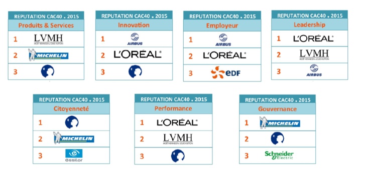 – Les entreprises en haut du classement sont celles qui affichent des scores de réputation élevés depuis plusieurs années : Michelin, Danone, Legrand, Airbus, LVMH.