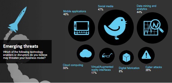 – La majorité des entreprises interrogées (53%) pensent que les nouvelles avancées technologiques de type mobile, social ou « big data » peuvent menacer les business models existants