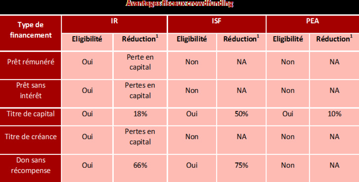 Tableau récapitulatif des avantages fiscaux au sein du financement participatif :