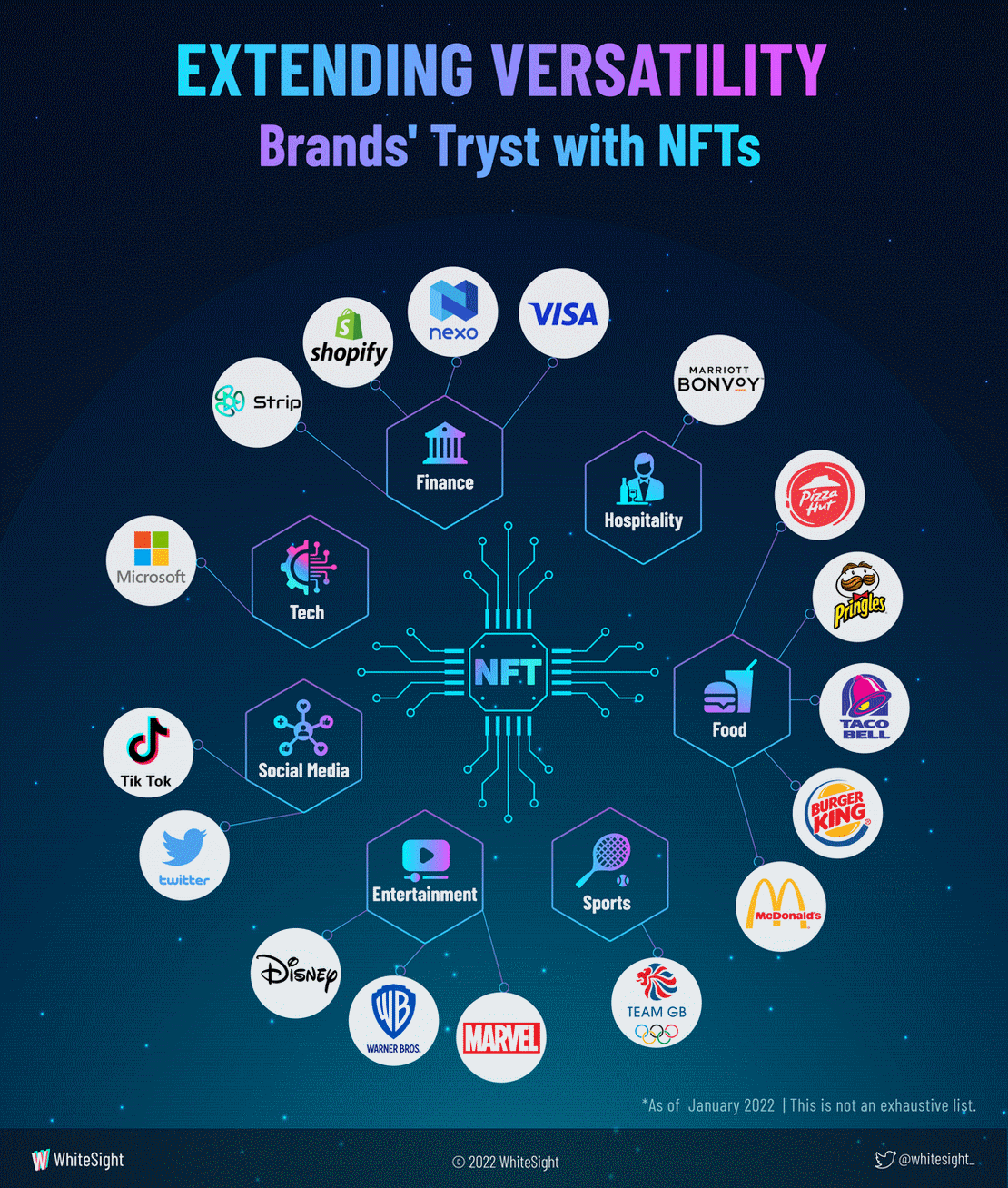 Brands, across industries, wasted no time to seize the opportunity that came with embracing this versatile trend. NFTs serve to be the key in unlocking the doors of engagement and individualized brand experiences. Whether it be art, videos, texts, or even one’s first tweet – any online-only file can be created to better interact with audiences through a personal brand story. Let’s uncover the shift made by various industries in the NFT space.
