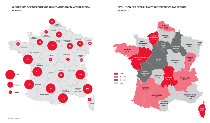 Le seuil des 60 000 cessations de paiement a été franchi cette année pour la première fois depuis 2009, qui en avait connu 62 300. 61 468 Redressements Judiciaires (RJ) ou Liquidations judiciaires (LJ) directes ont été ouverts par les tribunaux ; un nombre en augmentation de 2,8 % par rapport à 2012.