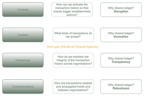 But on to the last and most important point. Where I do strongly agree with the report is when it talks about market friction and innovation. Sir Mark highlights the potential around smart contracts and asset registration, and in our work for a number of clients (not only in financial services) this is the area that we have identified as most likely to be subject to longer term and more disruptive innovation. Remember the “4Cs” layer model at the beginning of the post? That top layer, the “contracts” layer, is where the unknown unknown lay. The work being done by companies such as Ethereum and Eris is only just beginning to explore the new domain of distributed, trusted applications and I don’t see why the government won’t be able to take as much advantage of this as anyone else.