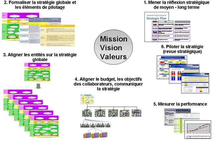 – quelle ne se contente plus (chaque année) de faire (ou revoir) un « beau » document stratégique qu’elle poste sur l’intranet. Elle décide d’exécuter le plan stratégique et de le piloter en mesurant son déploiement ;