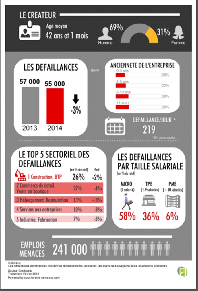 En 2014, le nombre de défaillances a chuté de 3%, passant de 57 000 à 55 000.