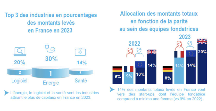 Au total, toujours selon cette étude, la France demeure le second pays européen ayant levé le plus de fonds en 2023, après la Grande Bretagne, mais devant l’Allemagne.