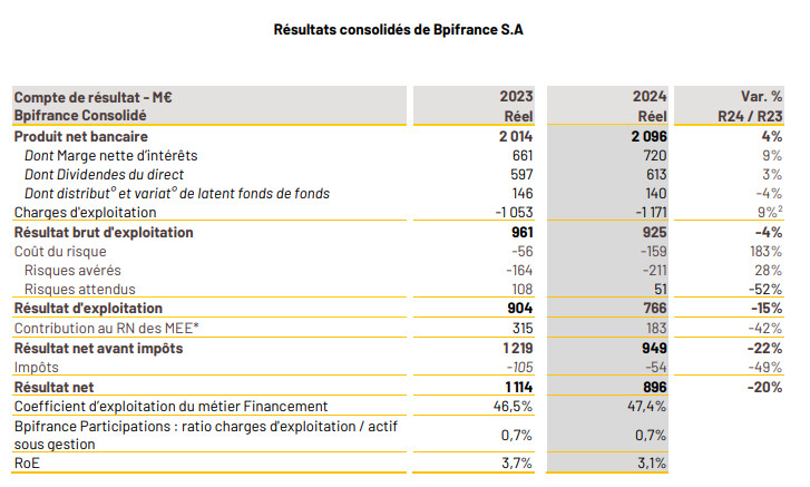 Bpifrance – Résultats financiers 2024 – 896 millions d’euros de résultat net