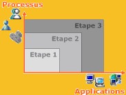 Pour accentuer sa différenciation, Notre solution propose une démarche progressive d’acquisition et d’implantation, par étapes, aux antipodes des projets " tunnel " de l’informatique des années 90s. Notre solution redonne le pouvoir au client, en lui proposant un système agile, construit sur la base même de son métier (exprimé sous forme de processus) mis en œuvre à son rythme sans modification de ses applications existantes.