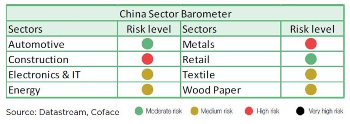 Distribution : ce secteur continue d’enregistrer de bonnes performances en matière de risque de crédit. Toutefois, les perspectives sont ternies par différents facteurs, et notamment les efforts du gouvernement pour lutter contre la corruption, le ralentissement de la hausse des revenus et des dépenses d’investissement, les tarifs douaniers et la TVA, ainsi que l’appréciation du yuan qui stimule la consommation à l’étranger.