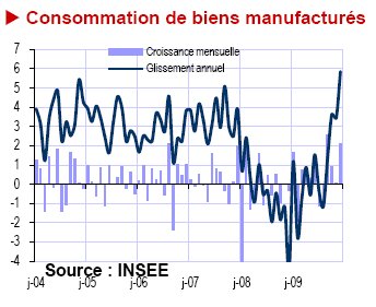 Sur les chiffres annuels aussi, la prime à la casse a eu une importance déterminante. Ainsi, hors automobiles, les achats de biens manufacturés ont perdu 0,3%. La consommation des ménages continue en outre de profiter des politiques passées. En effet, la politique économique a été l’année dernière, contrairement à une idée reçue, très favorable aux ménages (prime à la casse, distribution de chèques emplois services, non paiement de certains tiers provisionnels sur l’IRPP…).