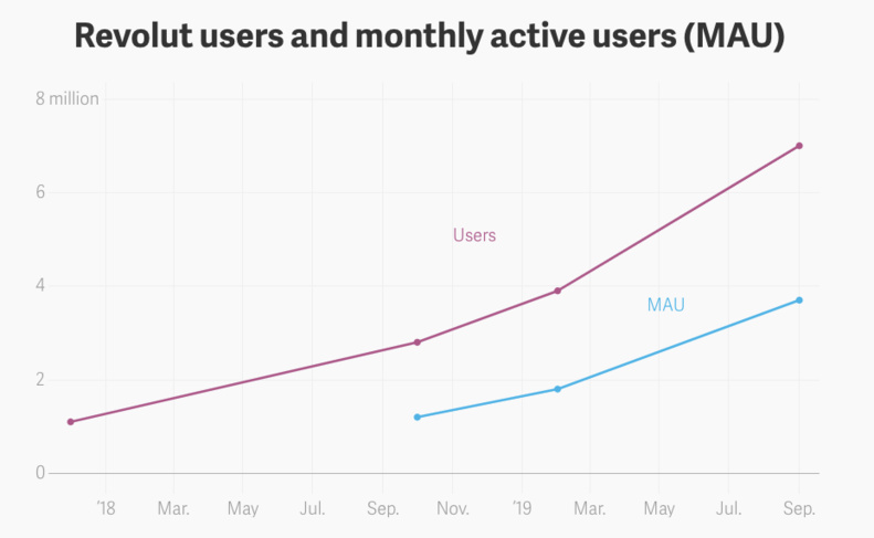 At that time the company had a little over 1.5 million. By the end of 2018, eight months later, Revolut’s user base doubled, reaching 3 million. This year, both in August and September 800,000 new users joined Revolut and today the company numbers 8 million strong, across UK and Europe. The company has an average monthly active users are 3.7 million and the total transaction volume, since Revolut’s launch in 2015, is now more than $85 billion.