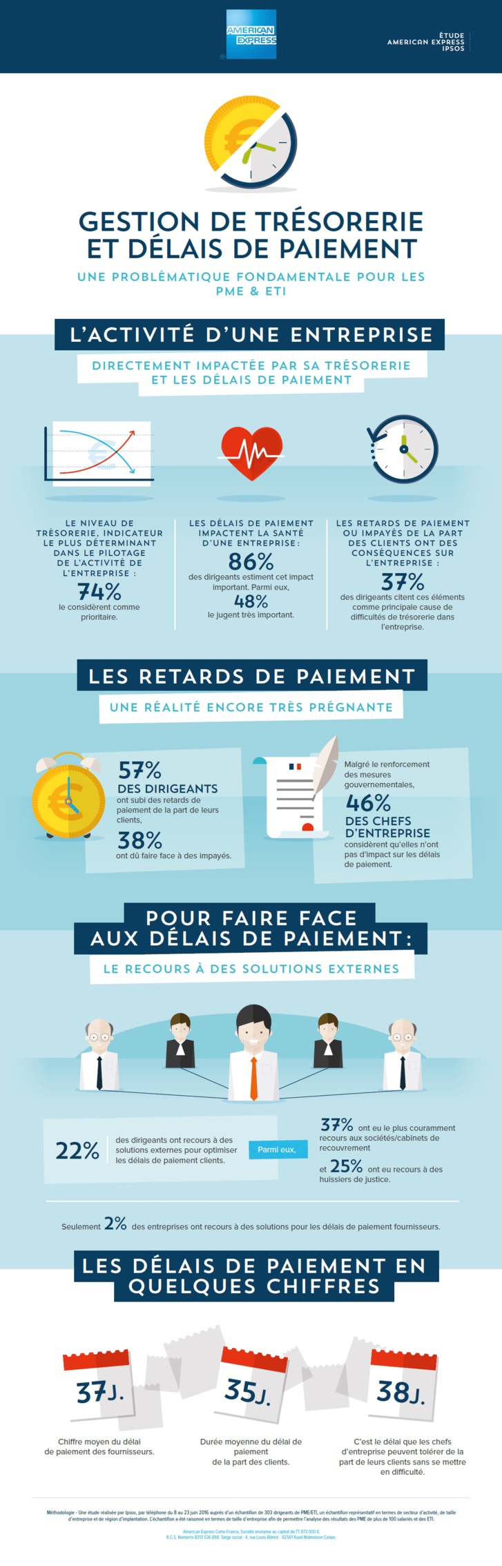 À l’occasion du Congrès des DAF 2016, American Express publie une étude sur la trésorerie et l’impact des délais de paiement sur les PME et ETI. Dans une perspective barométrique, American Express en partenariat avec Ipsos a interrogé des dirigeants de PME et d’ETI dans les mêmes termes qu’en 2014, permettant de mettre en évidence les évolutions prégnantes entre 2014 et 2016.