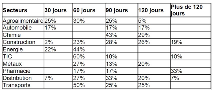 Expérience de paiement : des délais de paiement moyens compris entre 60 et 90 jours pour les fournisseurs domestiques et les exportateurs