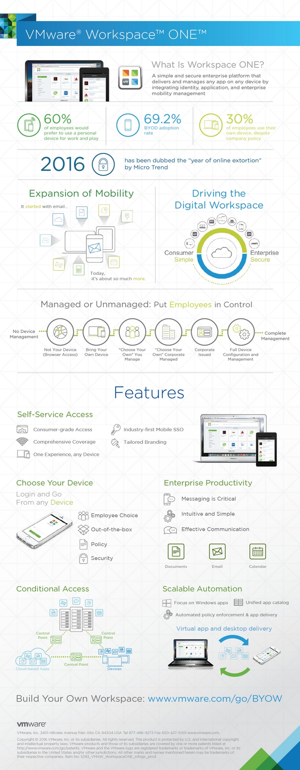 Le rapport ‘VMware 2016 State of the Digital Workspace Report’ est le résultat d’une enquête menée auprès 1263 dirigeants d’entreprises et influenceurs dans le domaine informatique au niveau mondial (305 en EMEA) sur l’adoption des ENT et sur leur transition de l’ère des clients-serveurs à celle du Cloud et de la mobilité.