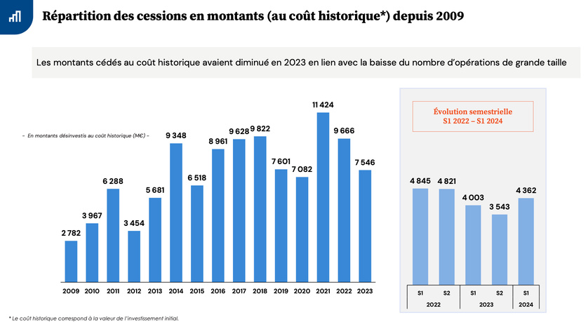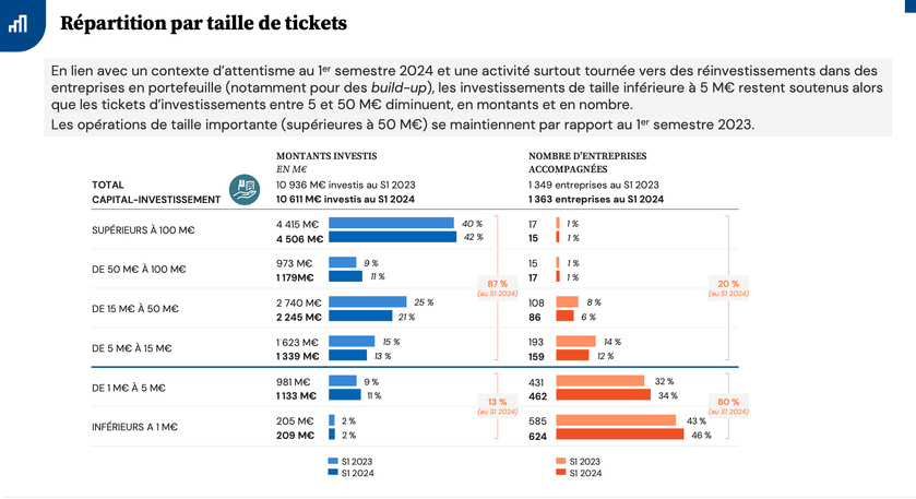 Enfin, les opérations nécessitant des injections de fonds propres supérieures à 50 M€ se sont stabilisées par rapport au 1er semestre 2023, après le ralentissement de 2022 lié aux conditions de financement.