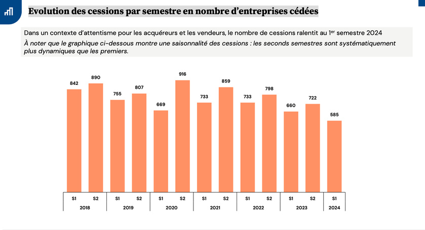 des entreprises en portefeuille. Enfin, les cessions n’ont pas encore retrouvé leur rythme. Bien que ces tendances sur un 1er semestre ne reflètent pas forcément une année entière, elles témoignent d’un marché qui n’a pas pleinement repris sur certains segments »