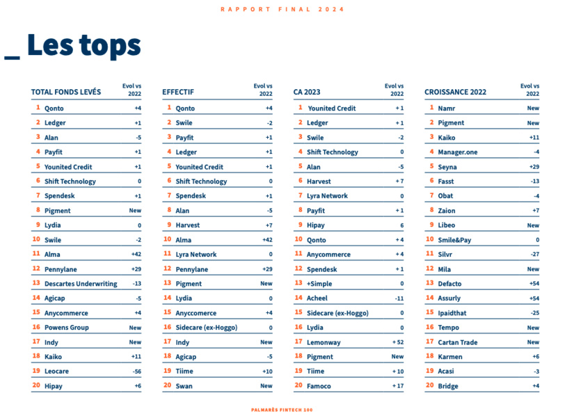 Ce Palmarès Fintech100 est produit par Finance Innovation et Truffle Capital en partenariat avec le groupe BPCE et Sopra Steria accompagnés par le groupe Mind. Il s'agit de la troisième édition de ce Palmarès. Sans suprise, le top 5 des Fintechs en France est composé de : Qonto, Ledger, Younited Credit, Swile, Payfit ...