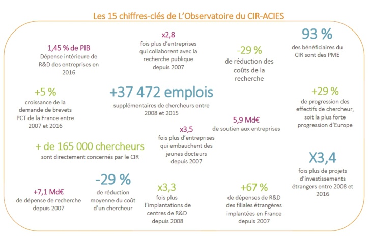 « L’Observatoire du CIR a pour ambition d’apporter chaque année un regard inédit sur la performance de ce dispositif, en mettant en perspective plus de 25 indicateurs clés. Cette 6ème édition montre clairement qu’après une phase de forte croissance, le CIR est aujourd’hui entré dans une phase de consolidation. Ses effets sur la croissance de la R&D ont permis d’obtenir d’excellents résultats, aussi bien en termes d’investissements qu’en termes d’attractivité. Sa sanctuarisation par l’actuel Gouvernement demeure logique au regard de la dynamique positive que le dispositif a contribué à créer depuis sa réforme majeure en 2008. Surtout, le succès important du CII révèle qu’une nouvelle dynamique s’est installée au profit des PME. Cette dynamique peut être poursuivie à condition qu’un nouveau souffle soit apporté par les pouvoirs publics. On estime en effet à 18 000 le nombre de PME potentielles pouvant prétendre au CII ! De quoi les aider à grandir et faire de la France une scale-up nation »