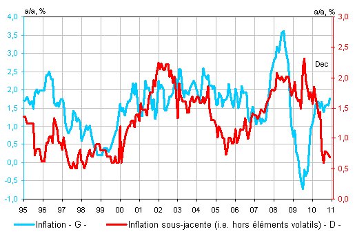 Il est donc urgent de calmer les ardeurs des monétaristes, en particulier à la Banque Centrale Européenne. Il s’agit d’ailleurs là d’un des principaux risques du début 2011. Car si, par excès d’orthodoxie, la BCE « s’amuse » à augmenter trop rapidement ses taux directeurs, le peu de reprise économique que connaissent la zone euro et la France depuis environ un an risque de partir en fumée.