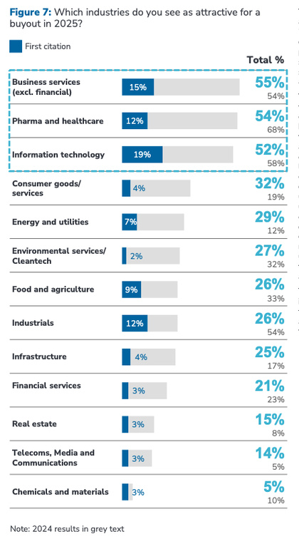 Le top 3 reste le même qu’en 2024, mais avec un tiercé dans le désordre. Cette année c’est le secteur "Business Services" qui se classe en tête (avant n°3), devant le chouchou de 2024 : "Pharma & Healthcare" et le son second, "Information Technology".