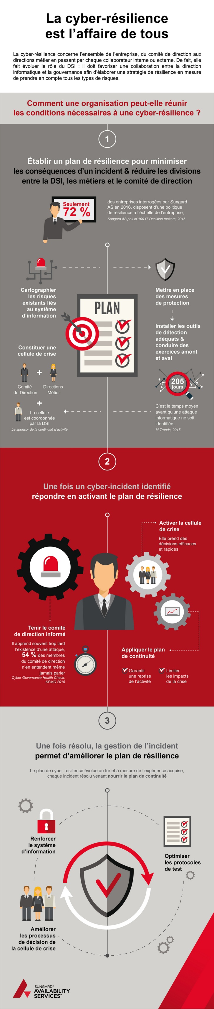 Cependant, une récente étude menée par Sungard AS a démontré qu’en 2016, seuls 72 % des entreprises interrogées disposaient d’une politique de résilience à l’échelle de l’entreprise.