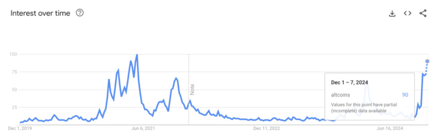 Le Bitcoin devrait poursuivre sa montée en mode découverte de prix jusqu’à l’investiture de Trump, ce qui pourrait marquer un sommet intéressant. À ce moment-là, les particuliers pourraient commencer à allouer massivement des fonds aux altcoins.
