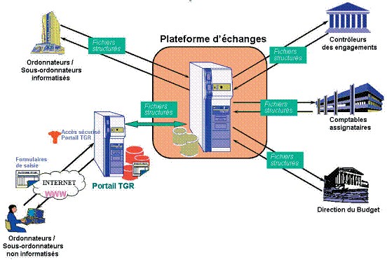 Cette plate-forme centralisée a pour objectif de faciliter l’envoi et la réception sécurisée des données relatives aux actes de gestion : propositions d’engagement (194 000 par an), ordonnances de paiement (900 000 par an), délégations de crédits (32 000 par an), etc.