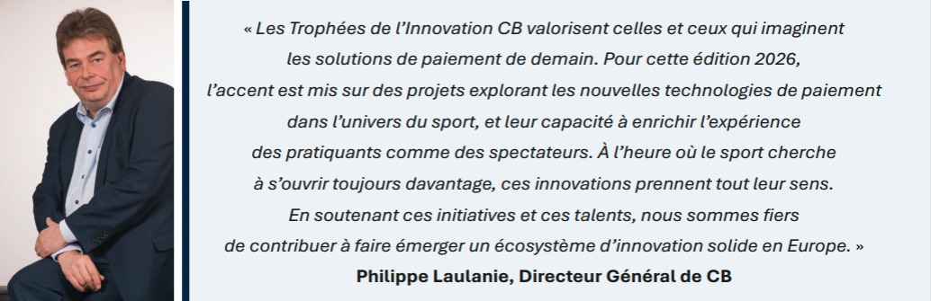 Temps fort de cette édition, les Trophées de l’Innovation CB 2026 ont mis à l’honneur les startups françaises les plus prometteuses de l’année, autour de la thématique « Sport & Innovation : comment l’innovation dans le paiement peut contribuer à booster l’expérience sportive ? », en lien direct avec l’engagement de CB dans l’univers sportif et l’officialisation de son partenariat avec les Championnats du Monde de Cyclisme UCI 2027 Haute-Savoie Mont-Blanc.