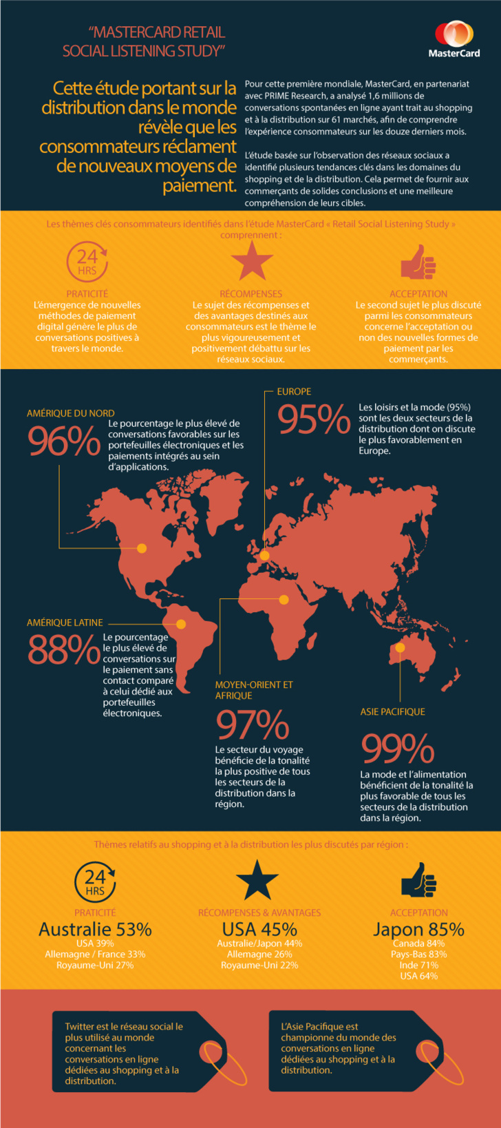 Parmi les résultats clés mis en avant par la « MasterCard Retail Social Listening Study », on note notamment :
