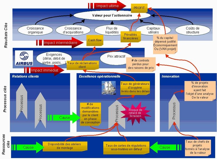 Pour les adeptes de l’approche Balanced Scorecard, les risques stratégiques peuvent être identifiés sur la carte stratégique™. Plusieurs scénarii sont envisageables :