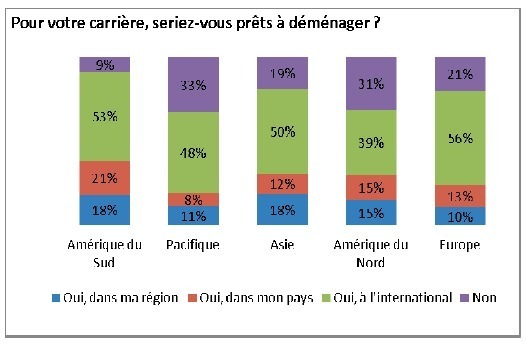 . Les CFO d’Amérique du Nord et de la région Pacifique sont les moins disposés à déménager. Notamment, les Américains du Nord sont peu nombreux à penser à l’expatriation internationale.