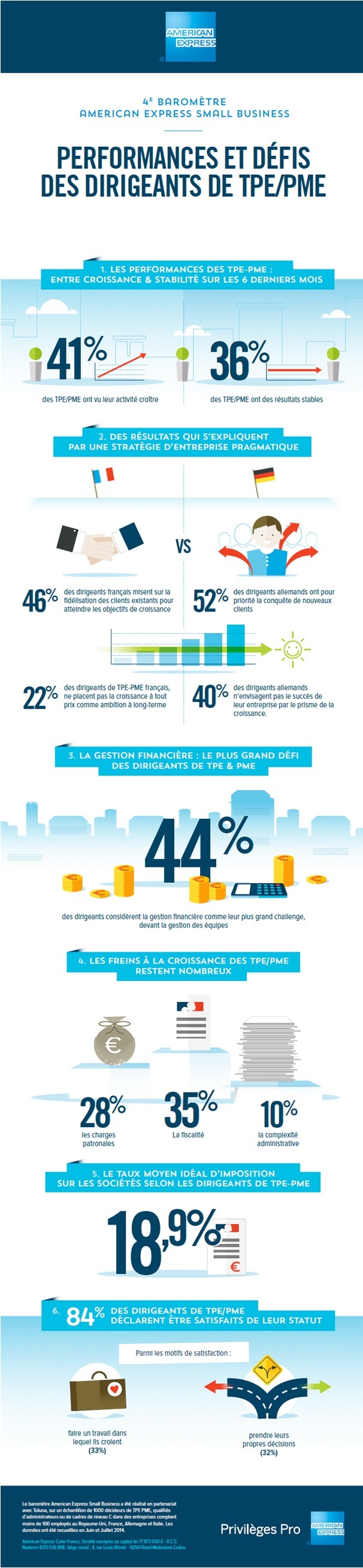 Le baromètre American Express Small Business a été réalisé en partenariat avec Toluna, sur un échantillon de 1000 décideurs de TPE PME, qualifiés d’administrateurs ou de cadres de niveau C dans des entreprises comptant moins de 100 employés au Royaume-Uni, France, Allemagne et Italie. Les données ont été recueillies en Juin et Juillet 2014.