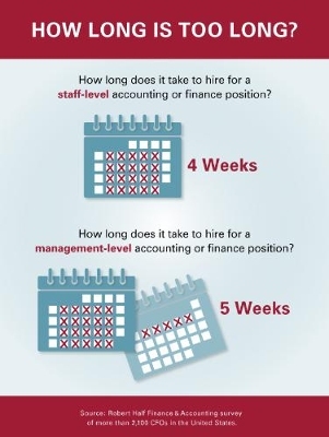 CFOs also were asked, "On average, how many weeks does it typically take to hire for an open management-level accounting or finance position?" The mean response was five weeks.