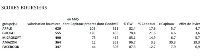 – les AIS de ces 5 groupes pèsent en moyenne 86% de leur capitalisation. Amazon se hisse, à cet égard, en tête avec 96,7% alors que Alphabet Google arrive en queue de peloton (78,4%).