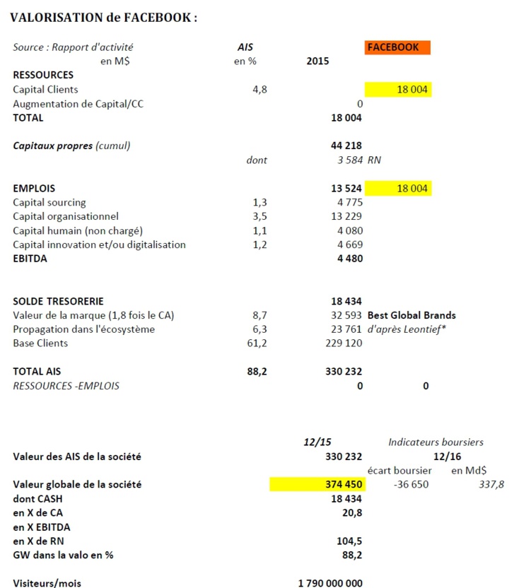 Notre méthode de valorisation permet d’estimer Facebook à fin 2015 à près de 375 Md$ alors que le marché apprécie ce groupe à 337,8 Md$ à fin 2016. Pourtant le potentiel de croissance s’avère important tant sur Facebook avec le lancement de Work Place destinée aux professionnels qu’avec sa filiale Whatsapp grâce à une meilleure monétisation de sa base.