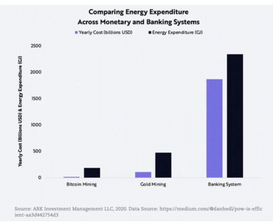 According to the Cambridge Center for Alternative Finance (CCAF), bitcoin currently consumes around 110 terawatt hours per year — 0.55% of global electricity production, or roughly equivalent to the annual energy draw of small countries like Malaysia or Sweden. This certainly sounds like a lot of energy. But how much energy should a monetary system consume?