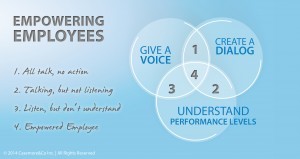 We spent some time exploring the value of being and empowering leader and how it would help reduce their priority overwhelm. I had the managers consider the infographic below to understand what they were doing well today, and where they needed to adjust their approach to increase employee empowerment.