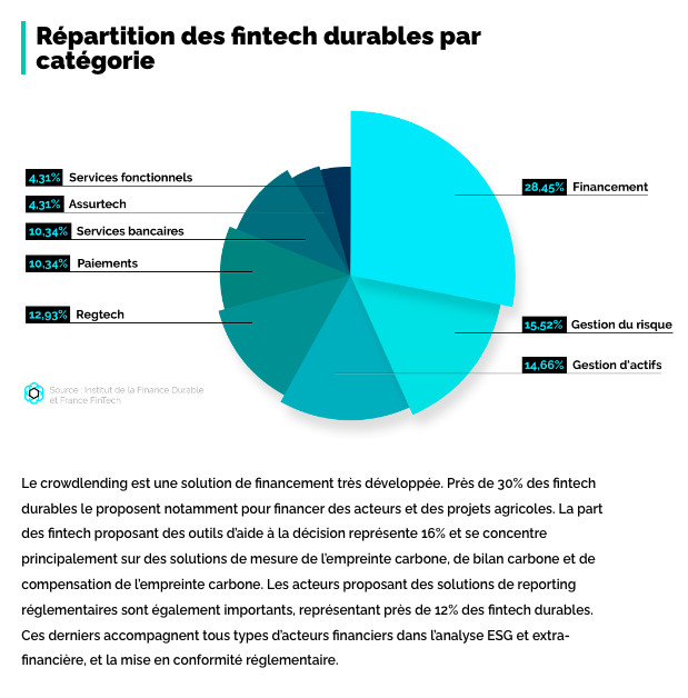 Une première pierre pour ces nouveaux "partenaires" qui ont, en cette première édition dénombré pas moins de 116 fintechs durables, dont 60 % auraient été créées au cours des quatre dernières années. Un segment jeune mais pas si immature puisque un peu moins d'1/3 de ces entreprises (30 %) réaliseraient déjà un CA supérieur ou égal à 1 million d'euros.