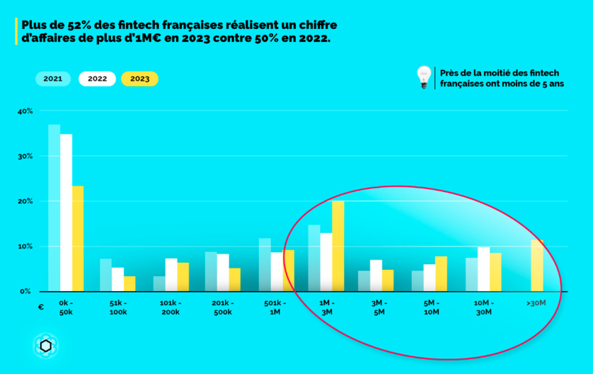 Effectivement, certains segments de marché sont sous pression et beaucoup d'acteurs doivent adopter leur modèle de manière très rapide notamment, les néo banques. Cependant, les fintechs françaises confirment une dynamique positive dans leur développement. 52 % d'entre elles réalisant un chiffre d'affaires de plus de 1 million contre 50 % en 2022.