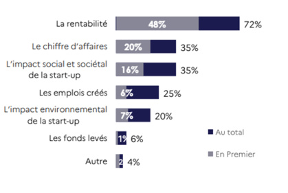 72 % des entrepreneurs pensent que d’ici à une dizaine d’années, cette "rentabilité" devrait être le premier critère de succès d’une startup (devant le CA, 35% et l’impact social et sociétal, 35% également).