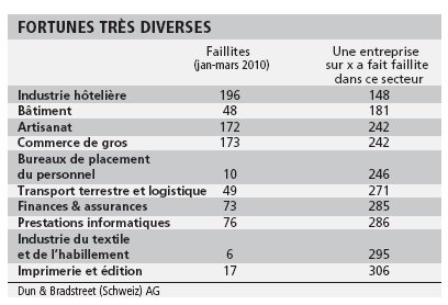 Outre une réelle augmentation du nombre de faillites d’entreprise, un amendement (CO 731b) a également contribué à faire exploser ce chiffre record. De plus, le taux de mortalité varie considérablement en fonction des différents secteurs considérés. Dans l’industrie hôtelière, une entreprise sur 148 a fait faillite entre janvier et mars, dans celui des instruments de précision et des montres «seulement» une sur 1265.
